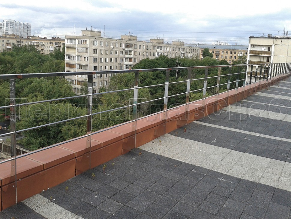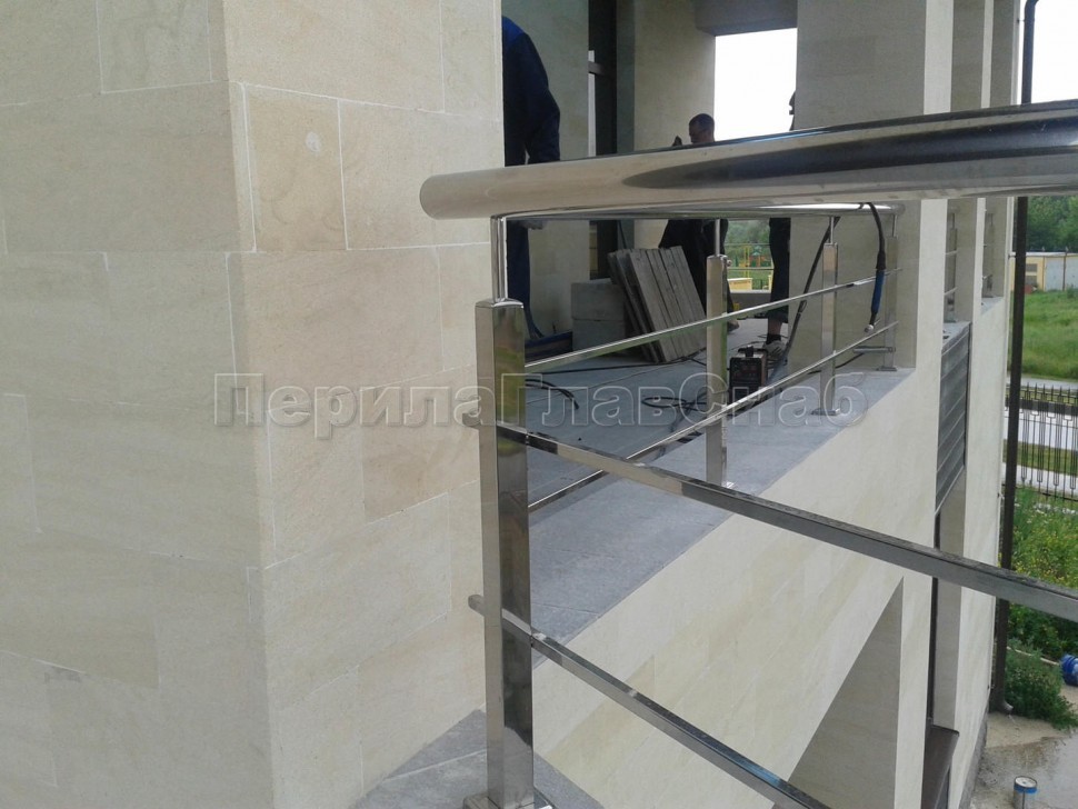 Записаться на встречу Два ригеля на держателях, круглый поручень и квадратные стойки