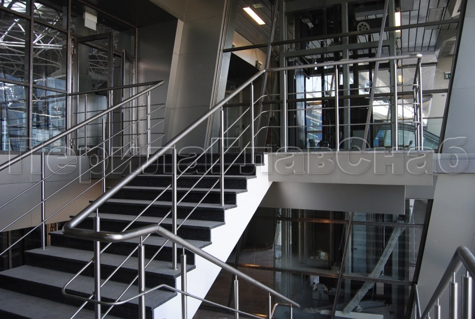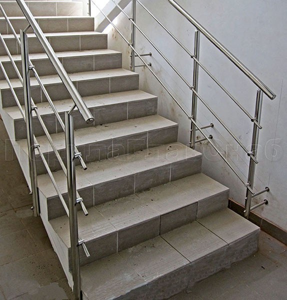 Записаться на встречу Три ригеля на держателях, круглый поручень и круглые стойки для крыльца