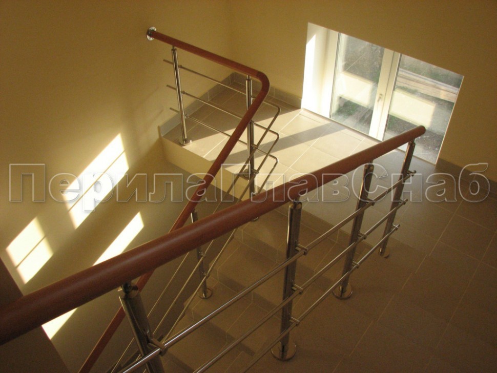 Нержавеющие ограждения без ригелей с круглым поручнем и стойками с деревянными вставками