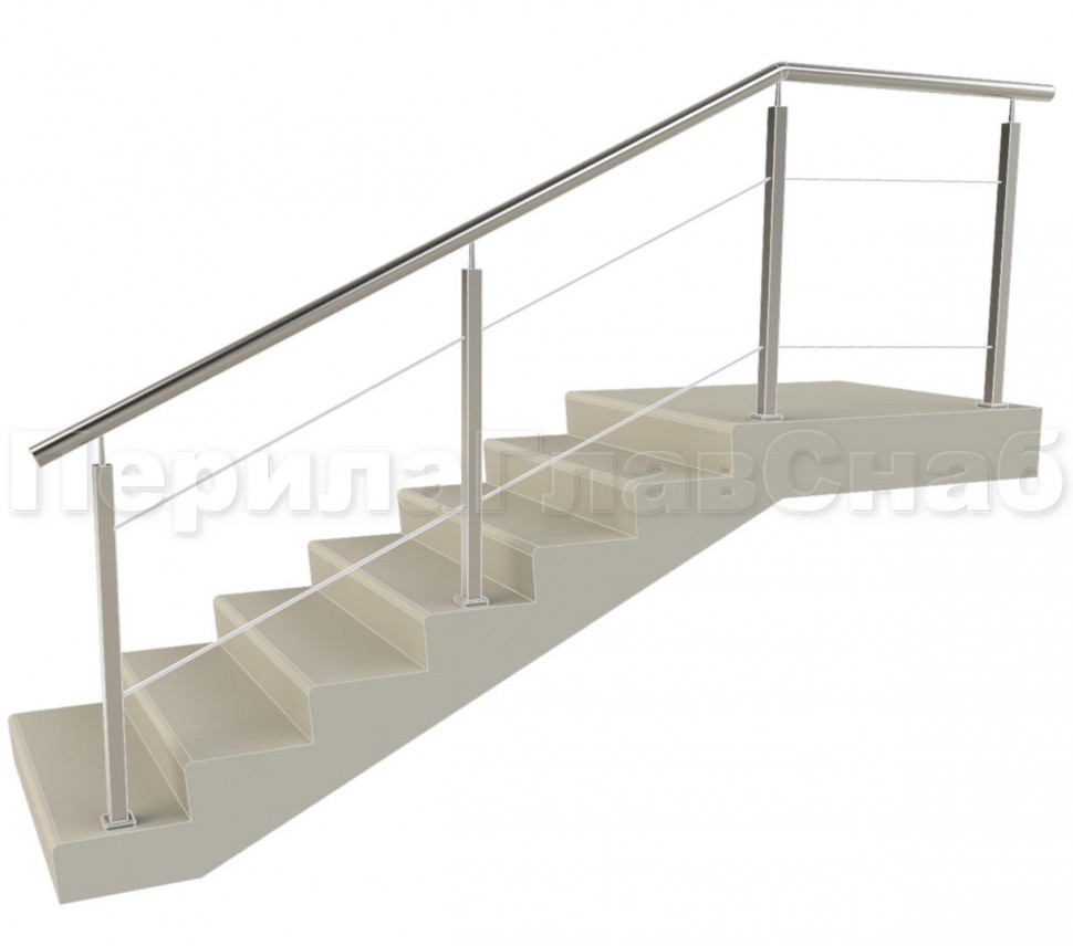 Ограждения из нержавейки. Заполнение из 3х тросиков. Квадратные стойки.