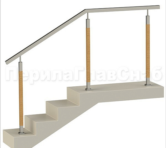 Записаться на встречу Нержавеющие ограждения без ригелей с квадратным поручнем и стойками с деревянными вставками