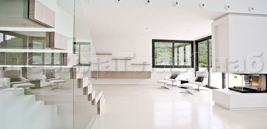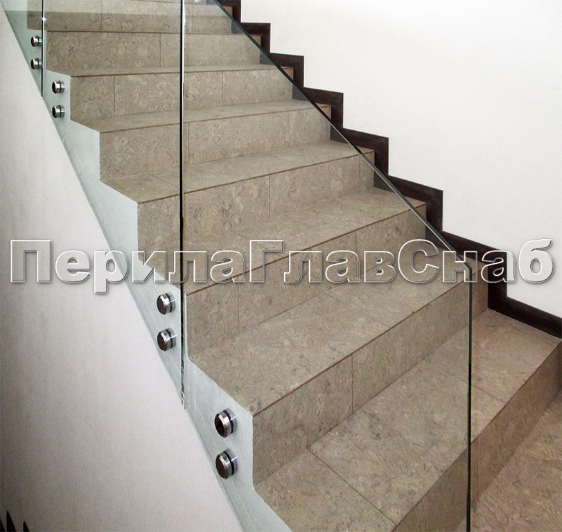 Ограждение с поручнем на выносе на точечном креплении на лестнице