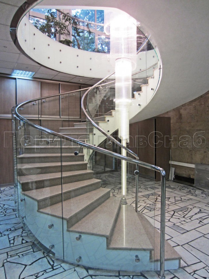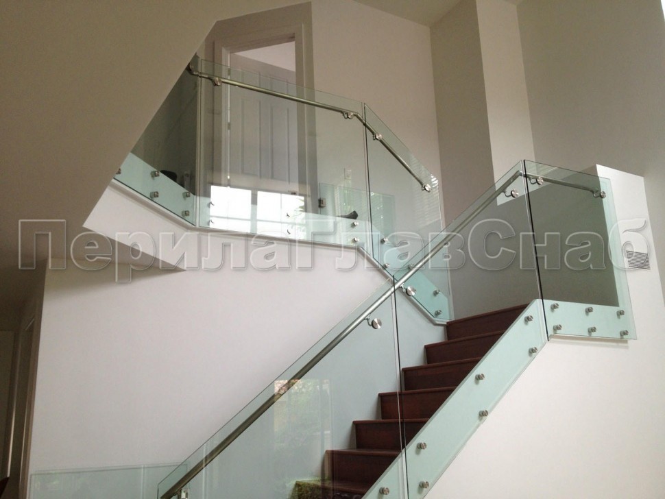 Ограждение с поручнем на выносе на точечном креплении на лестнице
