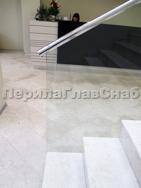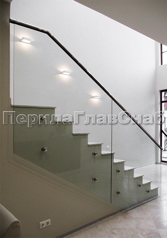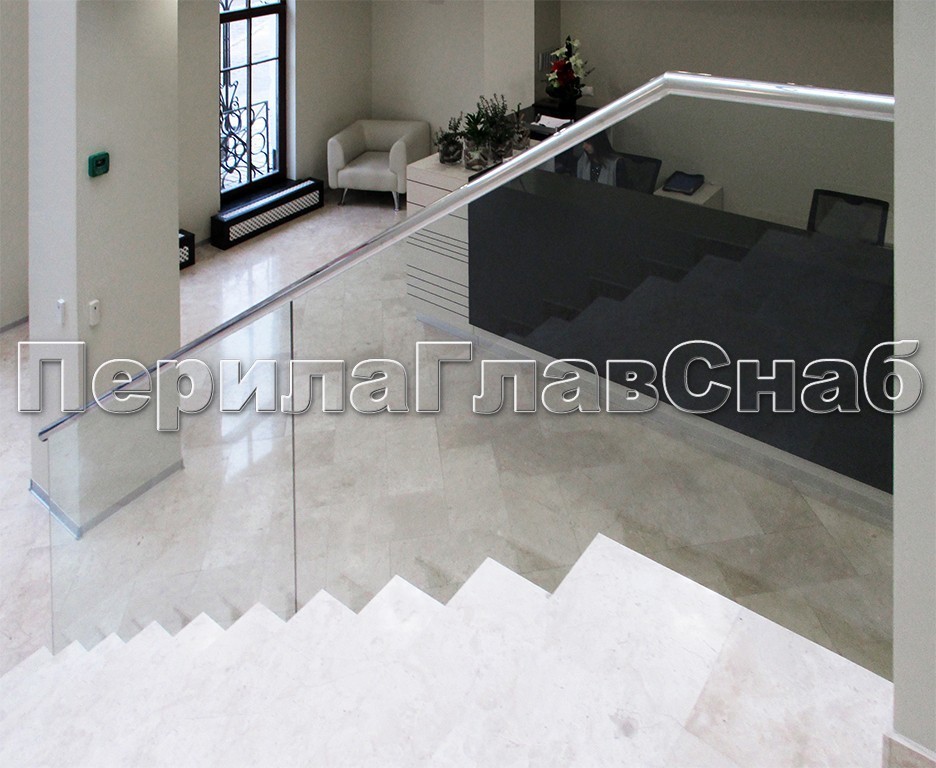 Записаться на встречу Ограждение с профильным поручнем с пазом на точечном креплении на лестнице