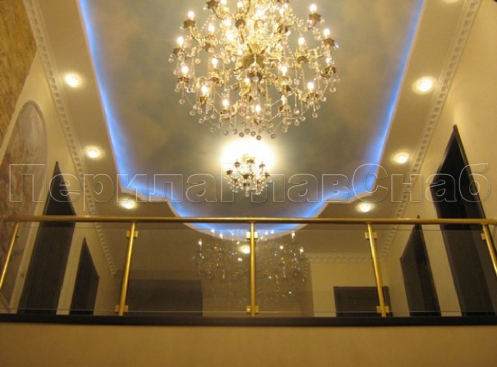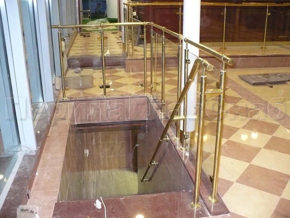 Лестничное ограждение с тремя ригелями и поручнем из латуни