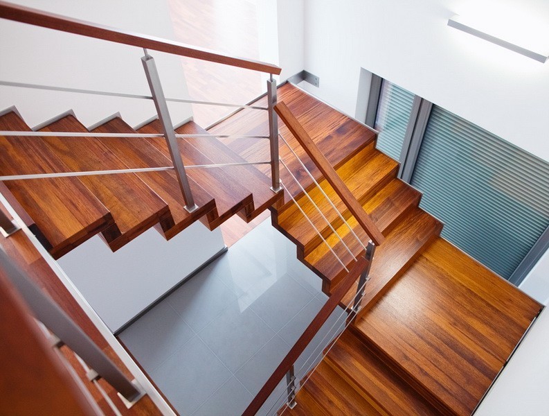 Нержавеющие ограждения без ригелей с круглым деревянным поручнем и стойками с деревянными вставками
