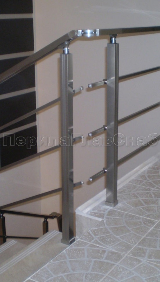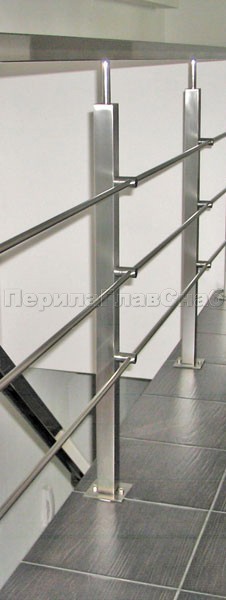 Четыре ригеля на держателях, квадратный поручень и квадратные стойки