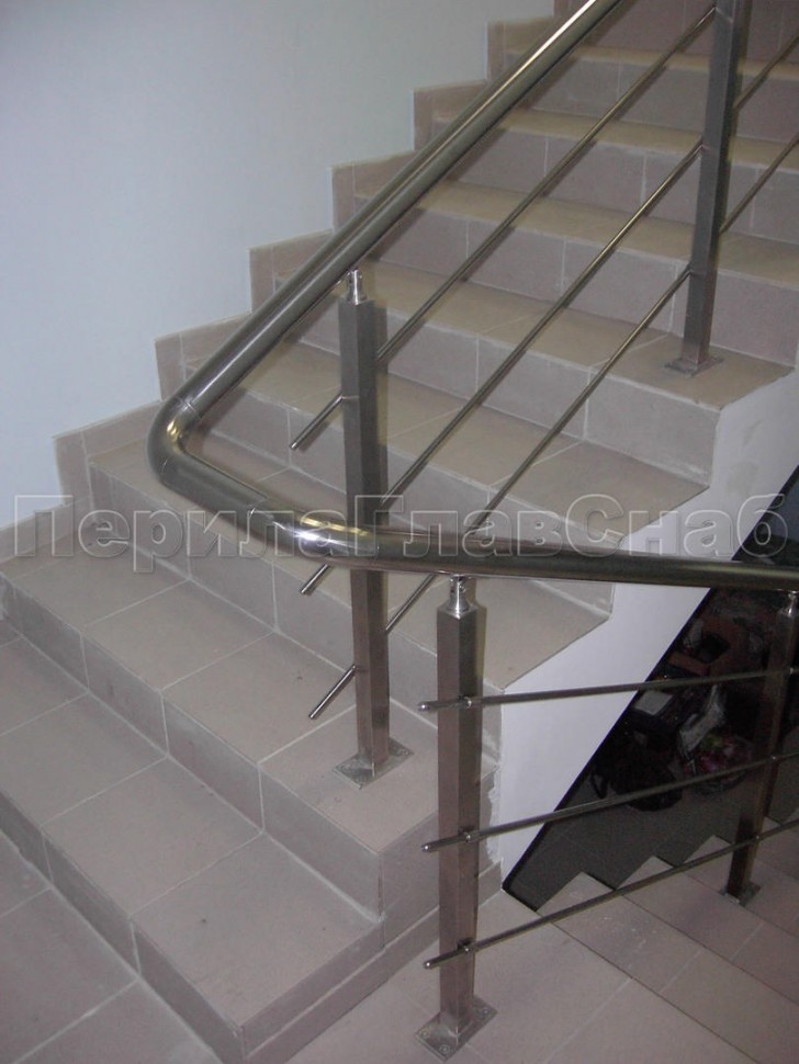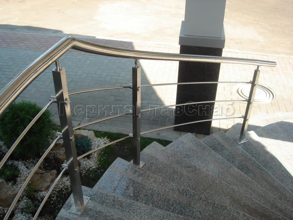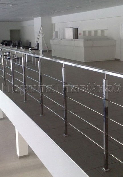 Четыре ригеля на сварке, круглый поручень и квадратные стойки