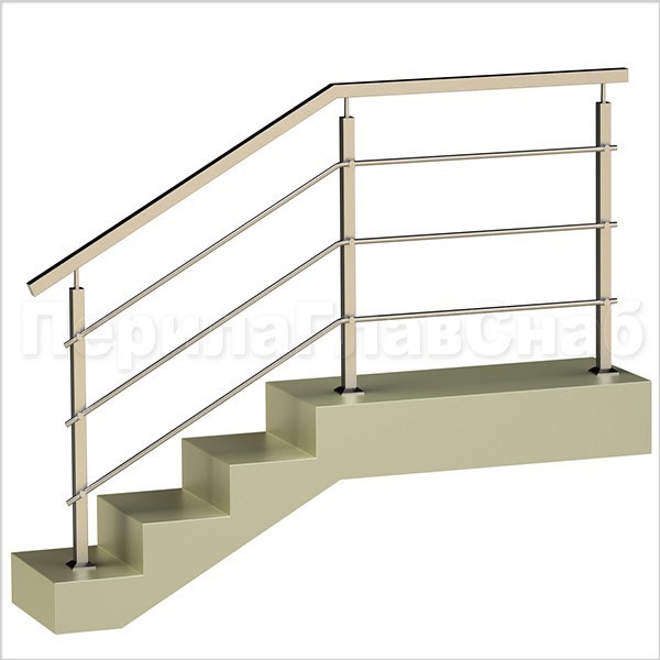 Четыре ригеля на держателях, круглый поручень и квадратные стойки