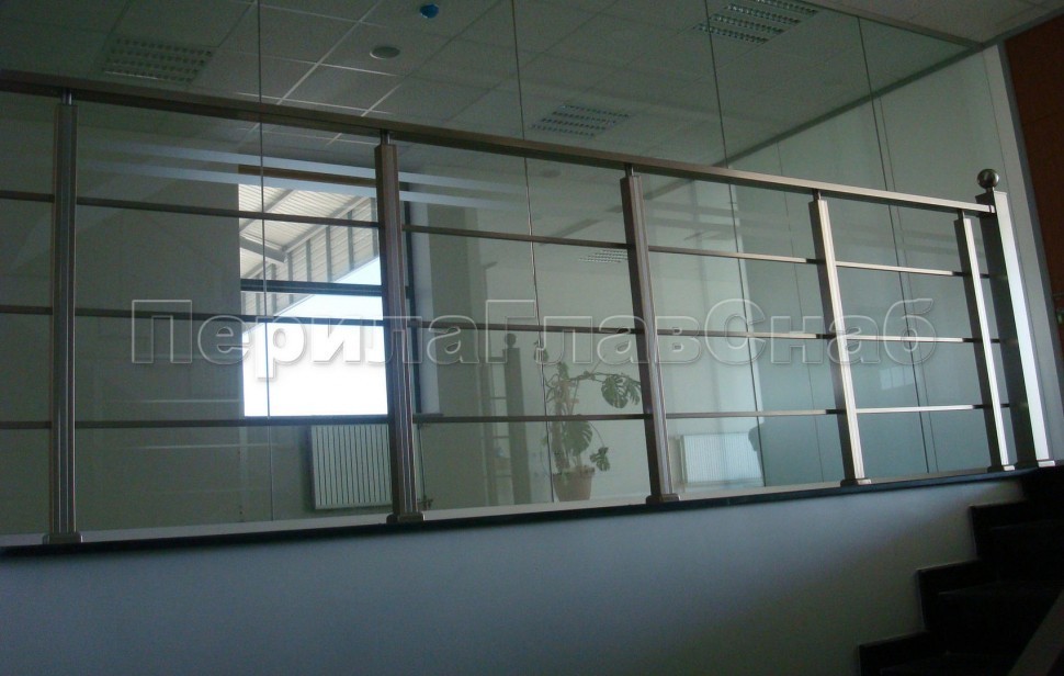 Ограждение атриума со стеклом и стойками