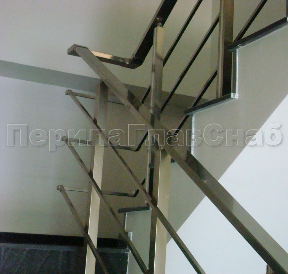 Ограждения с квадратным поручнем со стойками в каждую ступень без ригелей