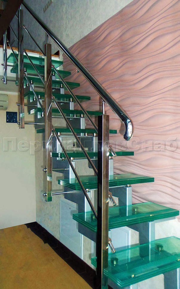 Ограждение для лестницы из нержавейки с зажимными стеклодержателями для крыльца