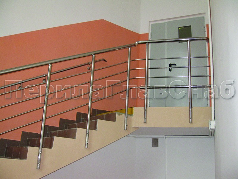 Четыре ригеля на сварке, круглый поручень и квадратные стойки