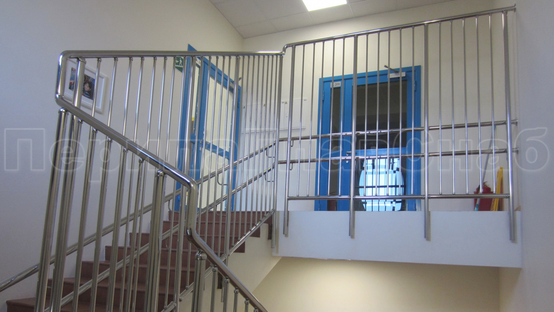 Нержавеющие ограждения для школ и детских садов с вертикальным заполнением “Частокол” - вариант №1 для крыльца