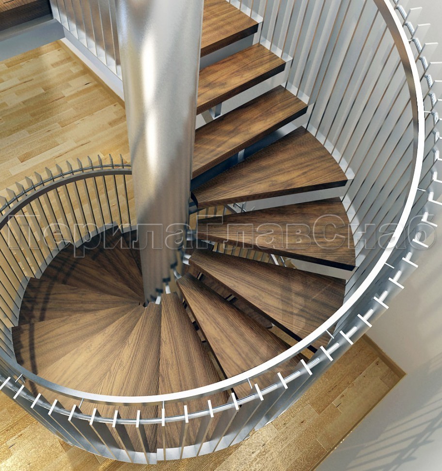 Ограждения со стойками в каждую ступень с круглым деревянным поручнем без ригелей