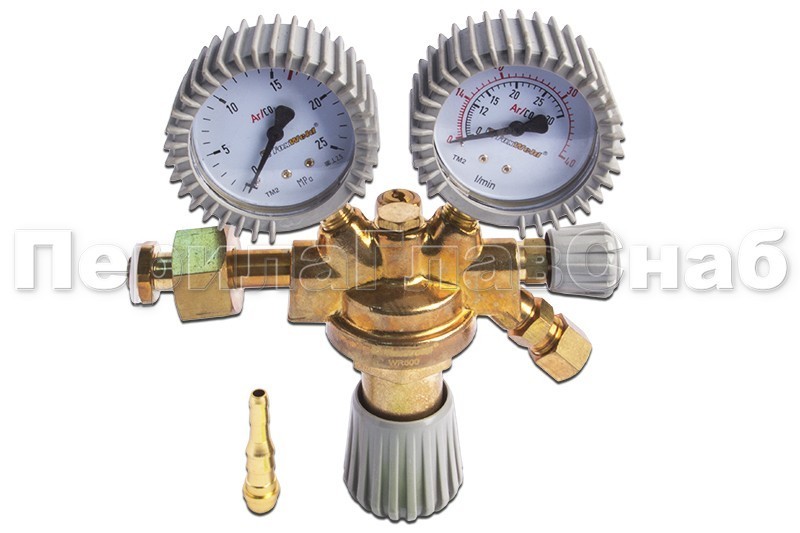 Регулятор WR500 (аргоновый/углекислотный, 1 манометр, 1 расходомер, вентиль). Предназначен для понижения и регулировки аргона и углекислоты поступающего из газового баллона. При изменении давления газа в баллоне на выходе обеспечивается постоянное давление.