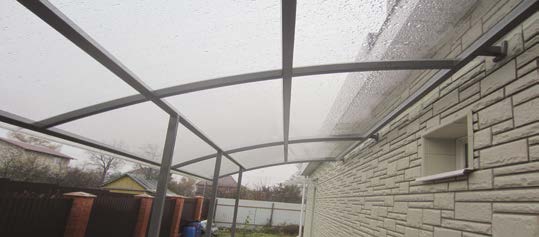 Кроме того у козырьков из сотового поликарбоната существует ещё одна проблема. Те самые соты, пустоты между слоями материала, легко забиваются пылью и грязью. И вычистить их достаточно сложная и трудоёмкая задача. До опрятности ли тут? Конечно, эти пустоты можно заделать, однако это обязательно скажется на итоговой стоимости конструкции.