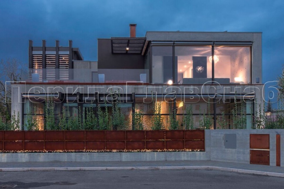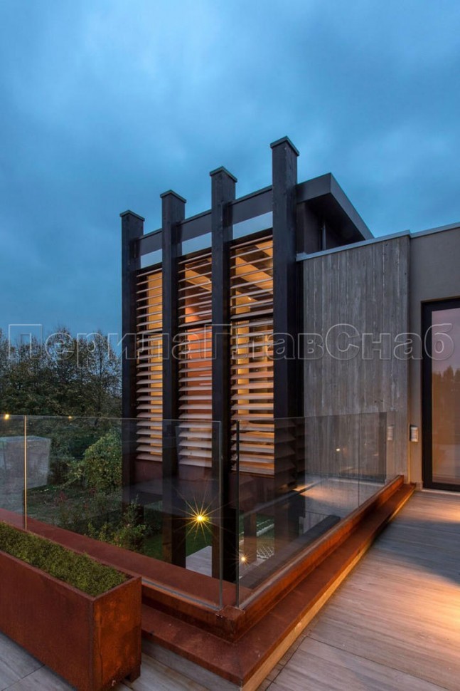 Ограждение кровли на несущем стекле и алюминиевом профиле