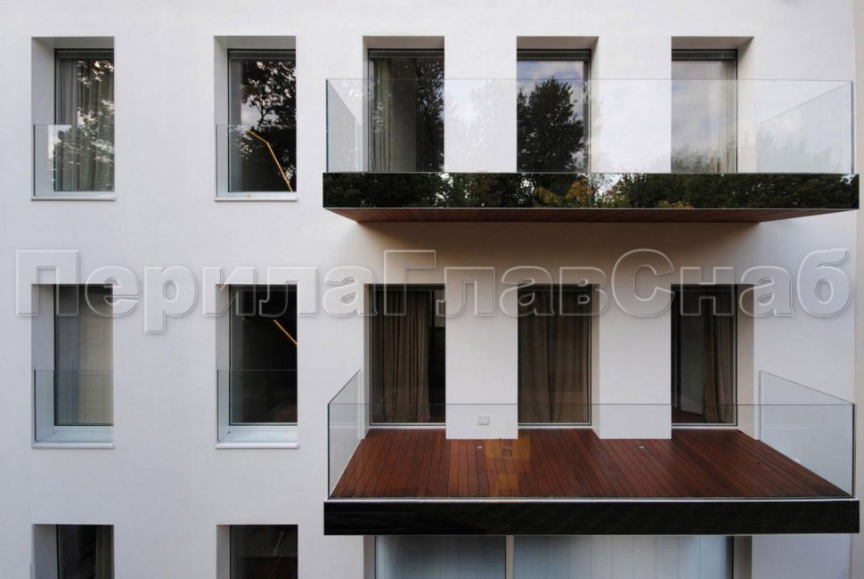 Это ограждение балконов экранного типа, с заполнением из стекла. Полностью отсутствуют стойки, поэтому конструция внешне выглядит очень целостной.