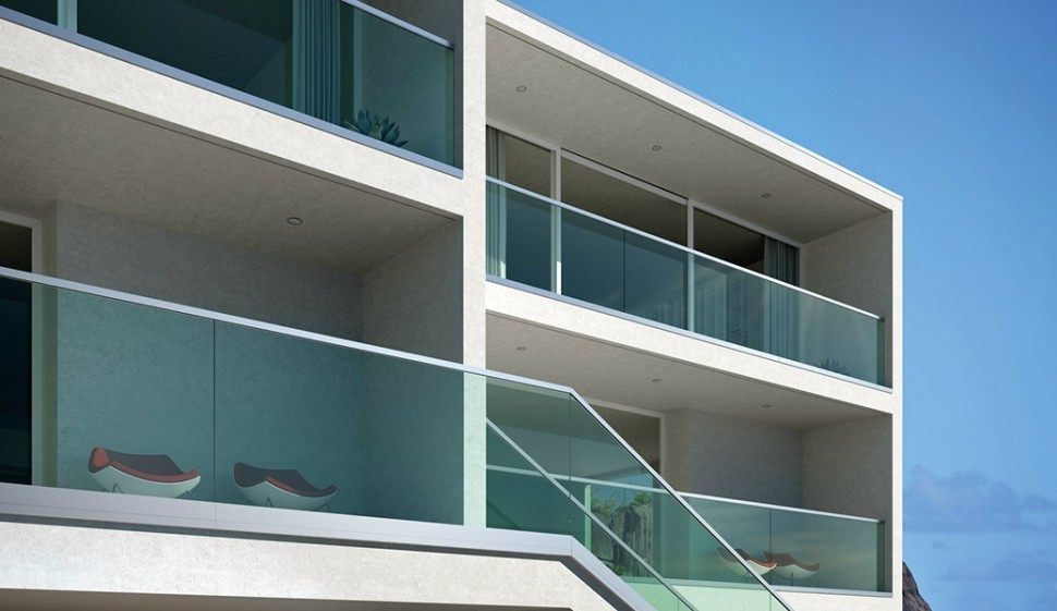 Ограждения на несущем стекле с торцевым креплением для балкона