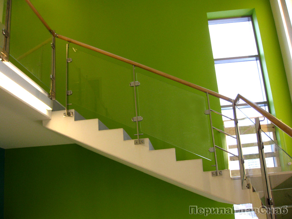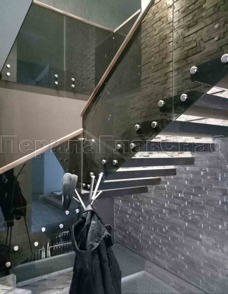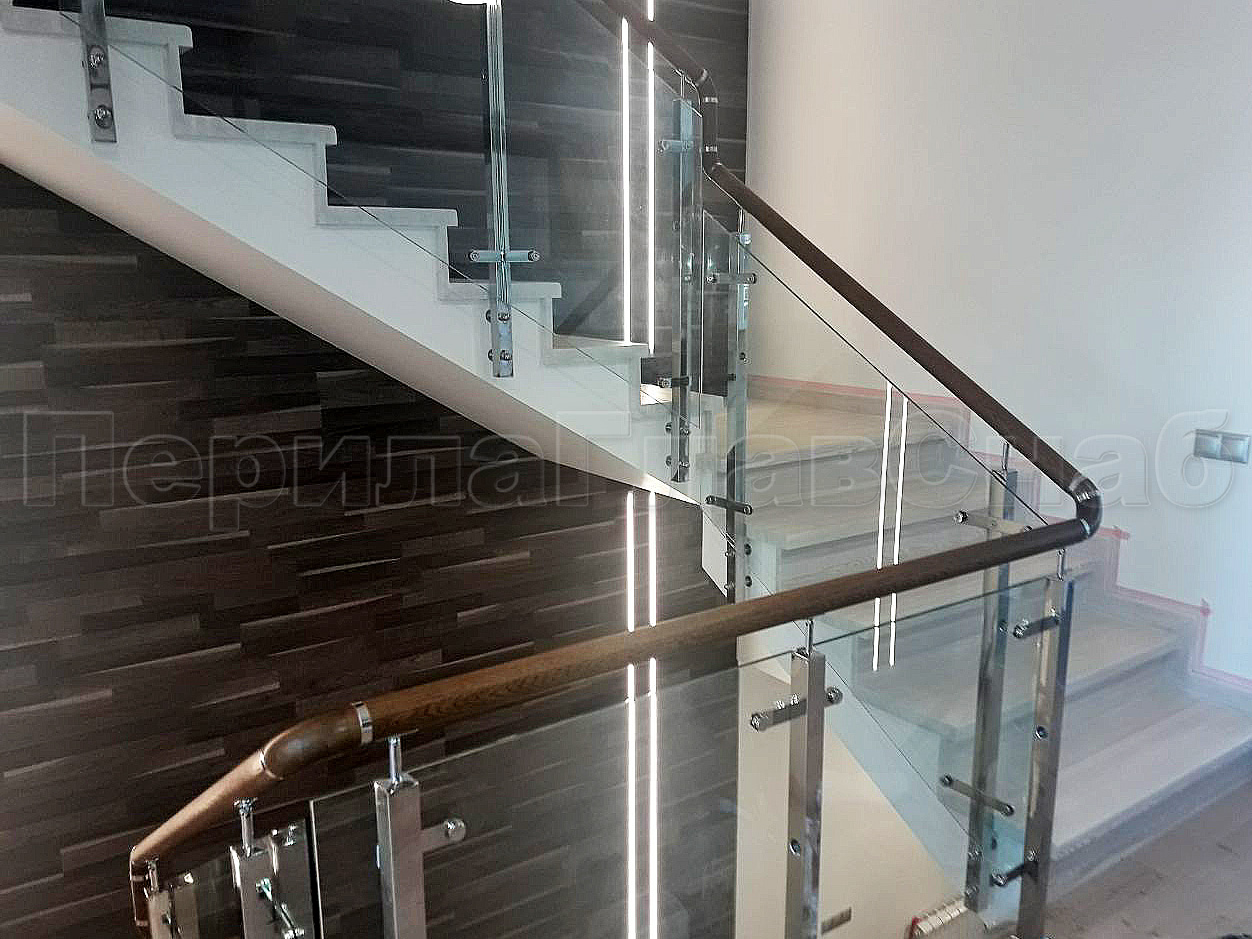 • Поручень - деревянная труба с пазом. Как дополнительная опция - можно включить подсветку стекла.