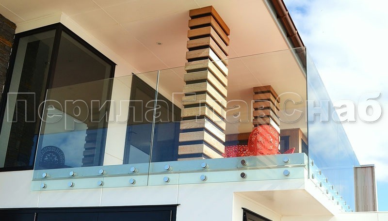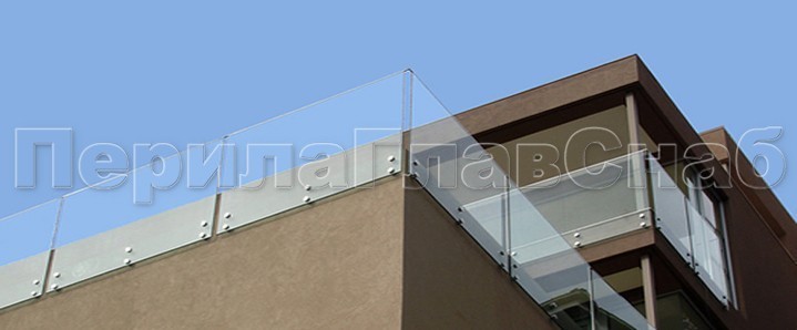 Цельностеклянные перила для эксплуатируемой кровли с креплением в торец балконной плиты