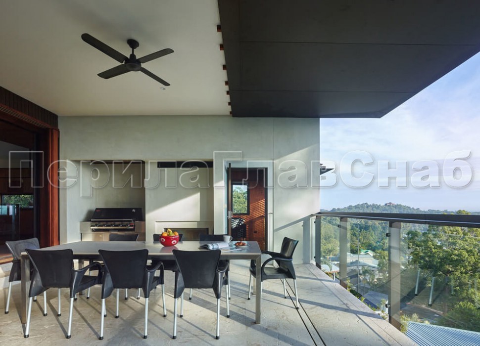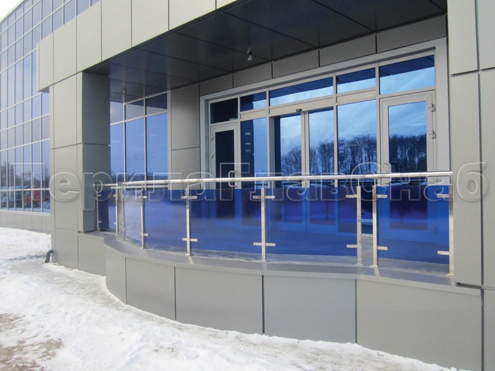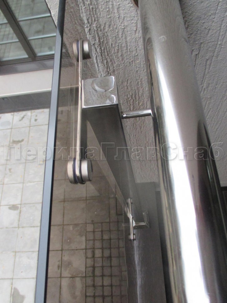 Можно выбрать ограждение из нержавейки с зажимными стеклодержателями.