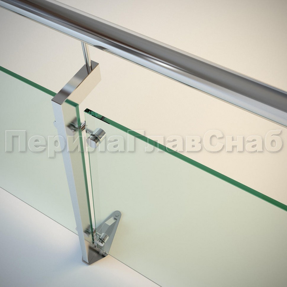 Ограждение лестницы с квадратным поручнем с зажимными стеклодержателями и квадратными стойками
