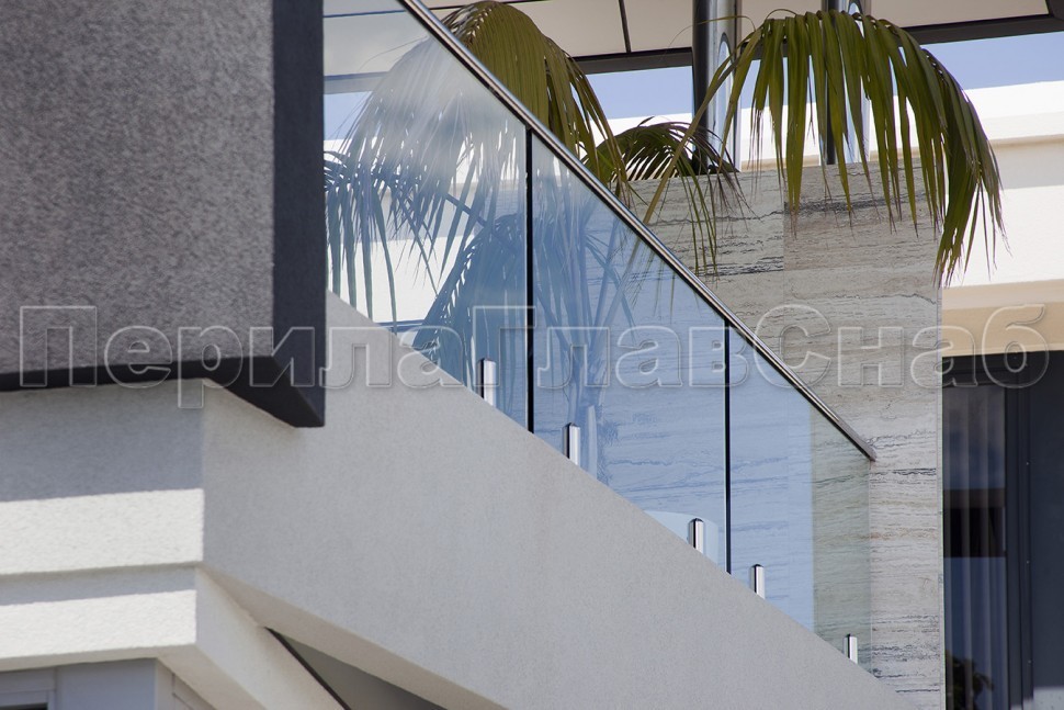 Ограждения лестницы без поручня с зажимными стеклодержателями и стойками