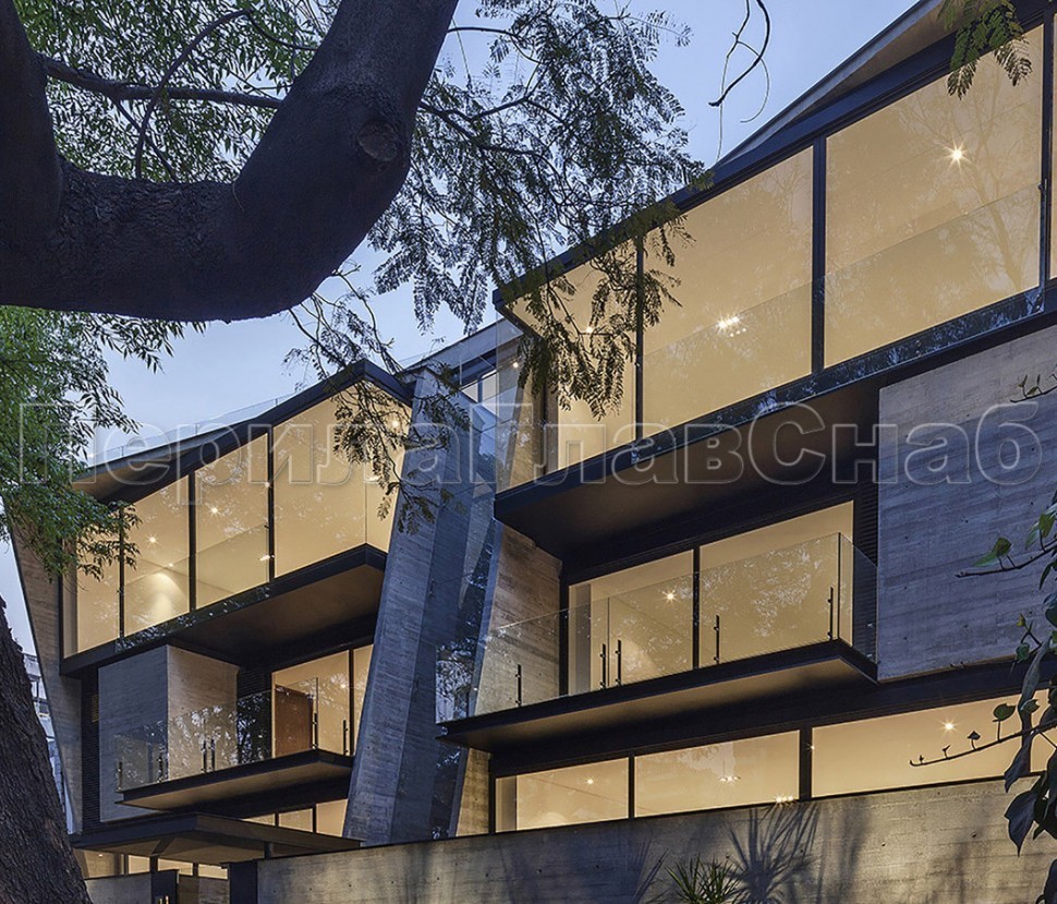 Ограждение кровли на несущем стекле и алюминиевом профиле