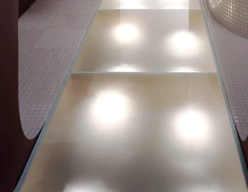 Подсветка стеклянного пола в гостинице
