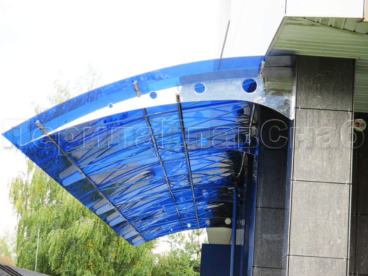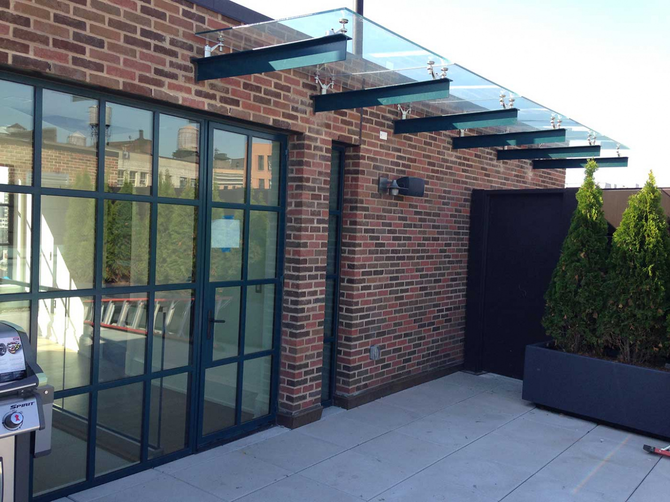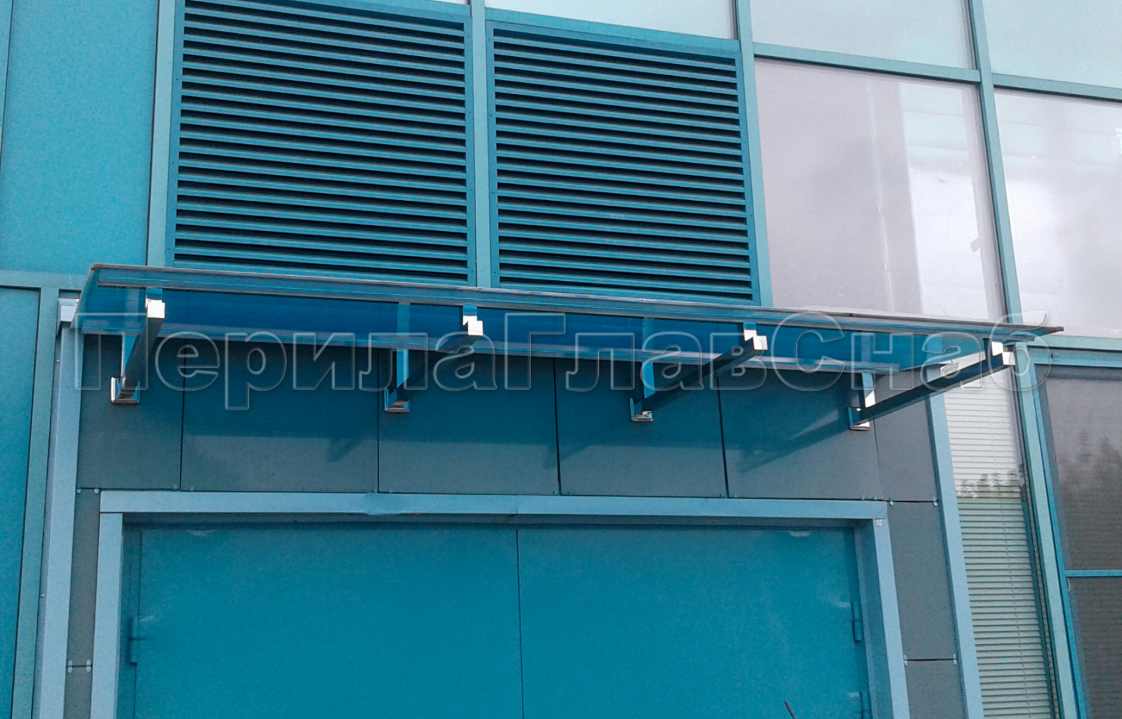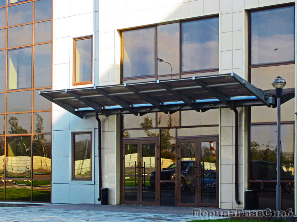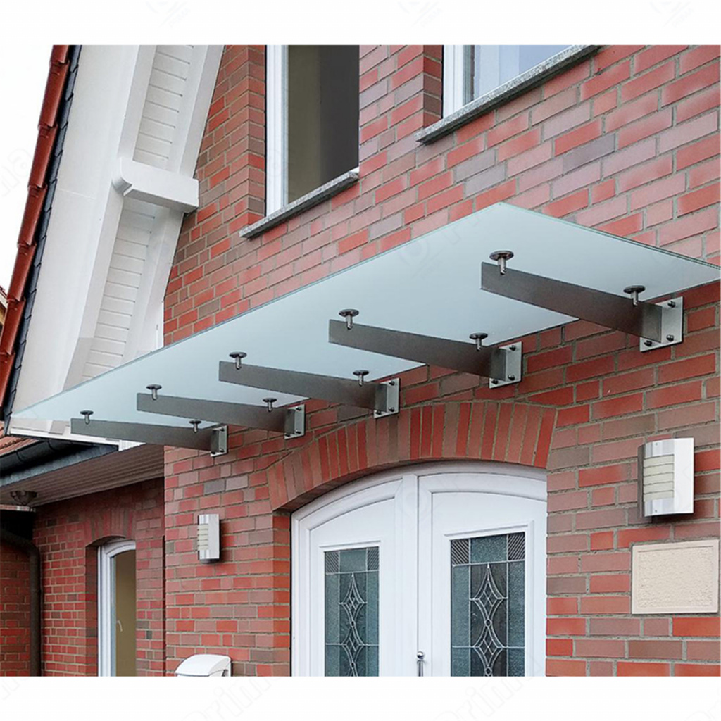 Стеклянный козырек на консоли из трубы